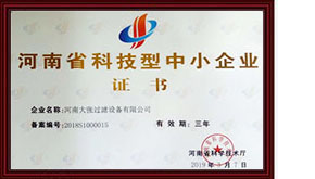 2020年9月9日——河南大張過(guò)濾設(shè)備有限公司榮獲“高新技術(shù)企業(yè)”證書